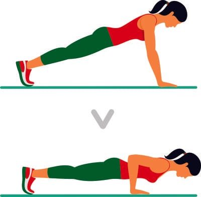 Get into a prone position on the floor, supporting your weight on your toes and your forearms. Your arms are bent and directly below the shoulder. Keep your body straight at all times, and hold this position for 45-60 seconds. To increase difficulty, an arm or leg can be raised.